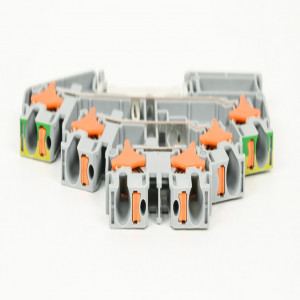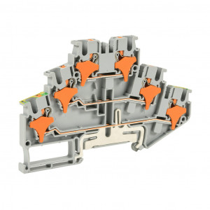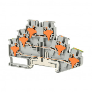 Precio no incluye IVAKONNECT-IT SCREWLESS FEEDTHROUGH TERMINAL BLOCK, TRIPLE-LEVEL WITH GROUND, ACCEPTS WIRE SIZE 28-12 AWG, GRAY, 20A, 300 VAC/VDC, 35MM DIN RAIL MOUNT. PACKAGE OF 50.