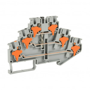 Precio no incluye IVAKONNECT-IT SCREWLESS FEEDTHROUGH TERMINAL BLOCK, TRIPLE-LEVEL, CONNECTED BETWEEN LEVELS TWO AND THREE, ACCEPTS WIRE SIZE 28-12 AWG, GRAY, 20A, 300 VAC/VDC, 35MM DIN RAIL MOUNT. PACKAGE OF 25.