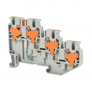 Precio no incluye IVAKONNECT-IT SCREWLESS FEEDTHROUGH TERMINAL BLOCK, TRIPLE-LEVEL, SENSOR PNP POWER INDICATOR, ACCEPTS WIRE SIZE 28-12 AWG, GRAY, 20A, 24 VAC/VDC, LED INDICATOR(S), 35MM DIN RAIL MOUNT. PACKAGE OF 50.