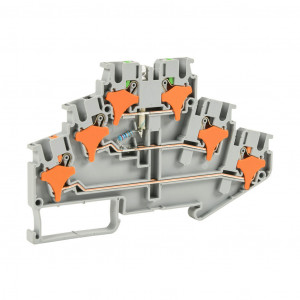 Precio no incluye IVAKONNECT-IT SCREWLESS FEEDTHROUGH TERMINAL BLOCK, TRIPLE-LEVEL, POWER INDICATOR BETWEEN LEVELS 2 AND 3, ACCEPTS WIRE SIZE 28-12 AWG, GRAY, 20A, 220 VAC/VDC, LED INDICATOR(S), 35MM DIN RAIL MOUNT. PACKAGE OF 25.