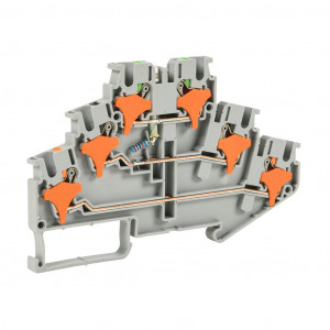 Precio no incluye IVAKONNECT-IT SCREWLESS FEEDTHROUGH TERMINAL BLOCK, TRIPLE-LEVEL, POWER INDICATOR BETWEEN LEVELS 2 AND 3, ACCEPTS WIRE SIZE 28-12 AWG, GRAY, 20A, 24 VAC/VDC, LED INDICATOR(S), 35MM DIN RAIL MOUNT. PACKAGE OF 50.