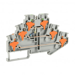Precio no incluye IVAKONNECT-IT SCREWLESS FEEDTHROUGH TERMINAL BLOCK, TRIPLE-LEVEL, POWER INDICATOR BETWEEN LEVELS 2 AND 3, ACCEPTS WIRE SIZE 28-12 AWG, GRAY, 20A, 24 VAC/VDC, LED INDICATOR(S), 35MM DIN RAIL MOUNT. PACKAGE OF 25.