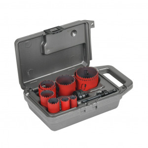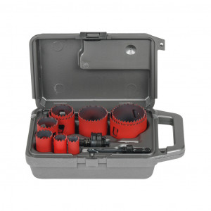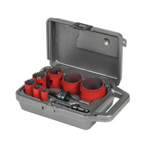 Set Includes | Includes (9) bi-metal hole saws (3/4in, 7/8in, 1-1/8in, 1-3/8in, 1-1/2in, 1-3/4in, 2in, 2-1/4in and 2-1/2in), (1) 3/8in hex standard arbor assembly, (1) 3/8in hex pinned arbor assembly, (1) tool storage case |
