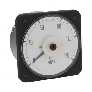 SIFAM TINSLEY MCS SWITCHBOARD METER, 4.5IN ANALOG DIAL DISPLAY, 0-150 VDC, VOLTAGE INPUT, SELF CONTAINED, PIVOT AND JEWEL, ROUND 4-HOLE MOUNT.