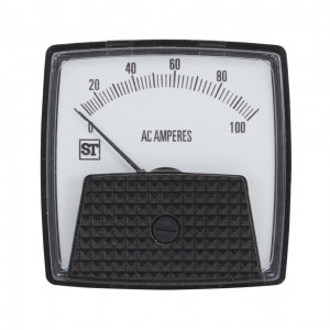 SIFAM TINSLEY SMARTLOOK PANEL METER, 2.5IN ANALOG DIAL DISPLAY, 0-100A AC, CURRENT INPUT, TRANSFORMER RATED, MOVING IRON, ROUND 3-HOLE MOUNT.