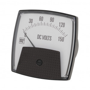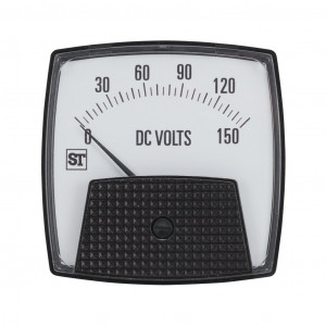 SIFAM TINSLEY SMARTLOOK PANEL METER, 3.5IN ANALOG DIAL DISPLAY, 0-150 VDC, VOLTAGE INPUT, SELF CONTAINED, MOVING COIL, ROUND 3-HOLE MOUNT.
