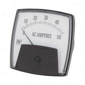 SIFAM TINSLEY SMARTLOOK PANEL METER, 3.5IN ANALOG DIAL DISPLAY, 0-50A AC, CURRENT INPUT, TRANSFORMER RATED, MOVING IRON, ROUND 3-HOLE MOUNT.