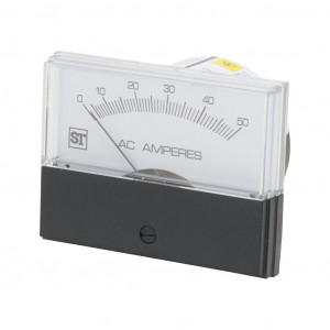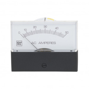 SIFAM TINSLEY CONTENDER PANEL METER, 2.5IN ANALOG DIAL DISPLAY, 0-50A AC, CURRENT INPUT, TRANSFORMER RATED, MOVING IRON, ROUND 4-HOLE MOUNT.