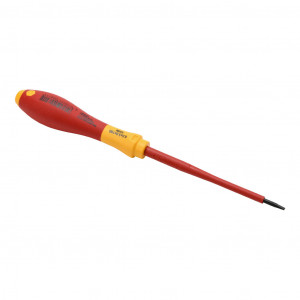 WIHA SOFTFINISH 3.0MM SLOTTED INSULATED SCREWDRIVER, 1000V INSULATION RATING, 3.9IN (100MM) SHAFT LENGTH, SOFTFINISH CUSHION GRIP HANDLE.