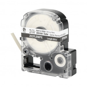 EPSON LABELWORKS PX SERIES HEAT-SHRINK TUBE LABEL CARTRIDGE, 3MM (1/8IN) NOMINAL DIAMETER, 98IN ROLL, BLACK TEXT, WHITE BACKGROUND, POLYOLEFIN, 22-14 AWG. FOR USE WITH EPSON LABELWORKS PX SERIES LABEL PRINTERS.