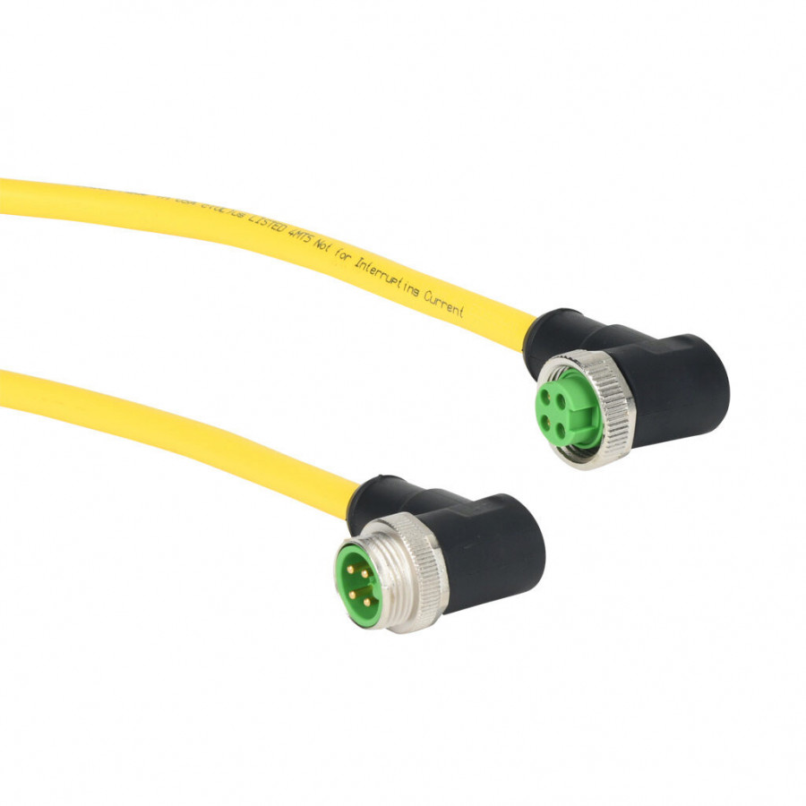Precio no incluye IVAMURRELEKTRONIK CONNECTION CABLE, 7/8IN - 16 UN2 90-DEGREE MALE WITH MALE THREADS TO 7/8IN - 16 UN2 90-DEGREE FEMALE WITH FEMALE THREADS, 4-POLE, 600 VAC/VDC, 9A, 16 AWG, TPE JACKET, YELLOW, UNSHIELDED, 0.9FT/0.3M CABLE LENGTH, IP68, POWER.