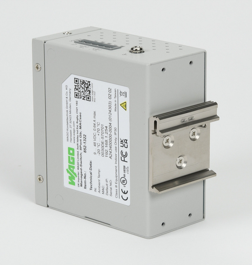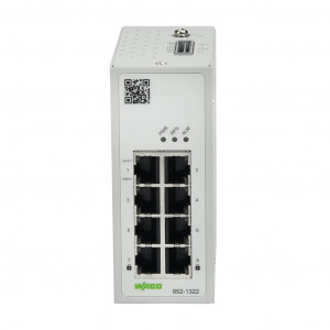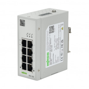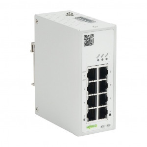 WAGO INDUSTRIAL LEAN MANAGED ETHERNET SWITCH, MAC SECURITY, 8 PORTS, (8) ETHERNET GIGABIT (RJ45) PORT(S), MODBUS TCP AND SNMP, -20 TO +70 DEG C, METAL HOUSING, IP30, 35MM DIN RAIL MOUNT.