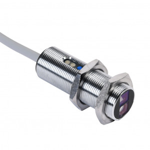 AUTOMATIONDIRECT PHOTOELECTRIC SENSOR, TUBULAR, THREADED, METAL, DIFFUSE WITH BACKGROUND SUPPRESSION, 10-120MM SENSING DISTANCE, LIGHT-ON, PNP, POTENTIOMETER, 500 HZ SWITCHING FREQUENCY, 6.5FT/2M CABLE LENGTH, PIGTAIL.