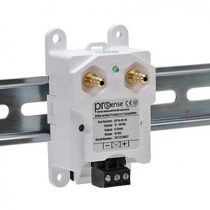PROSENSE AIR DIFFERENTIAL PRESSURE TRANSMITTER, 0 TO 10.0IN OF WATER COLUMN RANGE, 4-20 MA ANALOG OUTPUT, 1/4IN BRASS BARBED PROCESS CONNECTION, 12 TO 36 VDC OPERATING VOLTAGE, SCREW TERMINALS, 35MM DIN RAIL OR PANEL MOUNT.