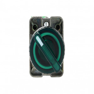 AUTOMATIONDIRECT SELECTOR SWITCH, 22MM, 2-POSITION, MAINTAINED, INCANDESCENT ILLUMINATED, (1) N.O. CONTACT(S), METAL BASE, METAL BEZEL, OPERATOR: GREEN, KNOB, 30MM, ROUND, PLASTIC, 24 VAC/VDC, FULL VOLTAGE.