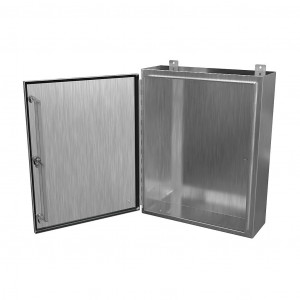 HAMMOND ENCLOSURE, NEMA 3R/4/4X/12/13, 30 X 24 X 8IN (HXWXD), WALL MOUNT, 304 STAINLESS STEEL, #4 BRUSH FINISH, SINGLE-DOOR, 3-POINT 316 STAINLESS STEEL PADLOCKING HANDLE.
