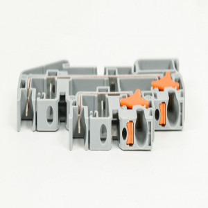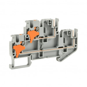 Precio no incluye IVAKONNECT-IT SCREWLESS FEEDTHROUGH TERMINAL BLOCK, DOUBLE-LEVEL, PIN CONNECTION INPUT, ACCEPTS WIRE SIZE 28-12 AWG, GRAY, 10A, 150 VAC/VDC, 35MM DIN RAIL MOUNT. PACKAGE OF 25.