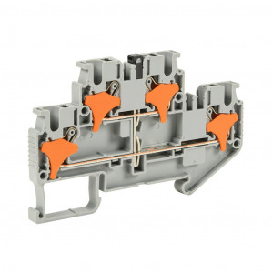 Precio no incluye IVAKONNECT-IT SCREWLESS FEEDTHROUGH TERMINAL BLOCK, DOUBLE-LEVEL, CONNECTED BETWEEN LEVELS, ACCEPTS WIRE SIZE 28-12 AWG, GRAY, 20A, 300 VAC/VDC, 35MM DIN RAIL MOUNT. PACKAGE OF 50.