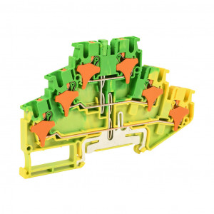 Precio no incluye IVAKONNECT-IT SCREWLESS GROUNDING TERMINAL BLOCK, TRIPLE-LEVEL CONNECTED BETWEEN LEVELS, ACCEPTS WIRE SIZE 28-12 AWG, YELLOW/GREEN, 300 VAC/VDC, 35MM DIN RAIL MOUNT. PACKAGE OF 50.