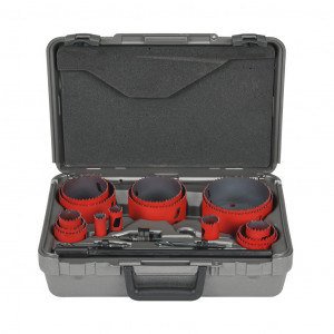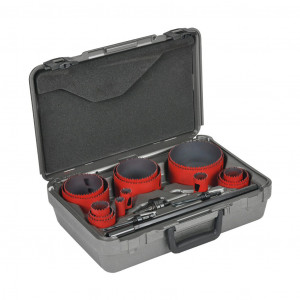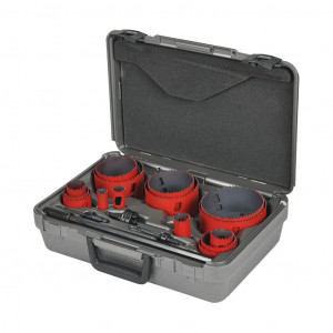 | Set Includes | Includes (15) bi-metal hole saws (3/4in, 7/8in, 1-1/8in, 1-3/8in, 1-1/2in, 1-3/4in, 2in, 2-1/4in, 2-1/2in, 3in, 3-1/4in, 3-5/8in, 3-3/4in, 4-1/4in, and 4-1/2in), (1) 1/4in hex standard arbor assembly, (1) 3/8in hex standard arbor assembly, (1) 7/16in hex pinned arbor assembly, (1) 12in extension, (1) tool storage case |