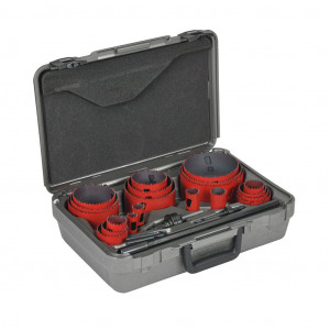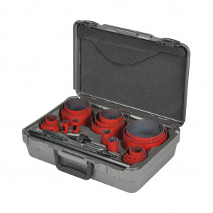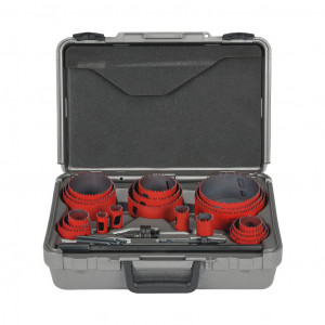 | Set Includes | Includes (18) bi-metal hole saws (3/4in, 7/8in, 1in, 1-1/8in, 1-3/8in, 1-1/2in, 1-3/4in, 2in, 2-1/8in, 2-1/4in, 2-1/2in, 2-5/8in, 3in, 3-1/4in, 3-3/8in, 3-5/8in, 4-1/8in, 4-1/2in), (1) 3/8in hex standard arbor assembly, (1) 7/16in hex pinned arbor assembly, (2) 1/4in pilot drills, (1) 12in extension, (1) tool storage case |