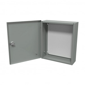 HAMMOND ENCLOSURE, NEMA 1, 14 X 12 X 4IN (HXWXD), WALL MOUNT, CARBON STEEL, ANSI 61 GRAY, POWDER COAT FINISH, SINGLE-DOOR, 1/4-TURN FLUSH-MOUNTED LATCH.