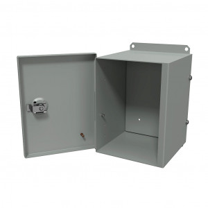 HAMMOND ENCLOSURE, 3-PIECE ASSEMBLY, NEMA 1, 8 X 6 X 6IN (HXWXD), WALL MOUNT, CARBON STEEL, ANSI 61 GRAY, POWDER COAT FINISH, SINGLE-DOOR, 1/4-TURN FLUSH-MOUNTED LATCH.
