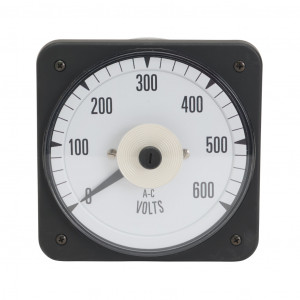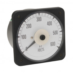 SIFAM TINSLEY MCS SWITCHBOARD METER, 4.5IN ANALOG DIAL DISPLAY, 0-600 VAC, VOLTAGE INPUT, TRANSFORMER RATED, PIVOT AND JEWEL, ROUND 4-HOLE MOUNT.