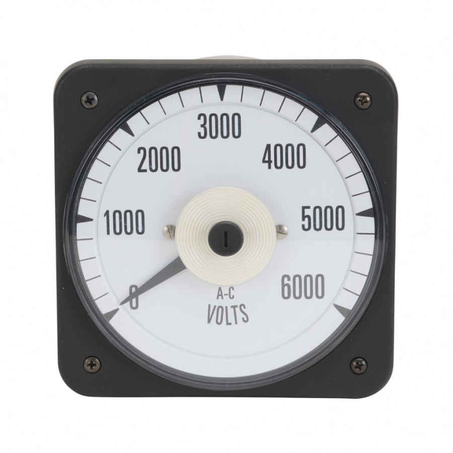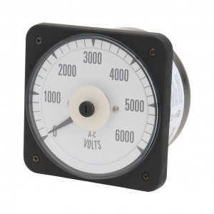 SIFAM TINSLEY MCS SWITCHBOARD METER, 4.5IN ANALOG DIAL DISPLAY, 0-6000 VAC, VOLTAGE INPUT, TRANSFORMER RATED, PIVOT AND JEWEL, ROUND 4-HOLE MOUNT.