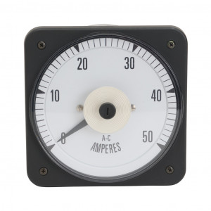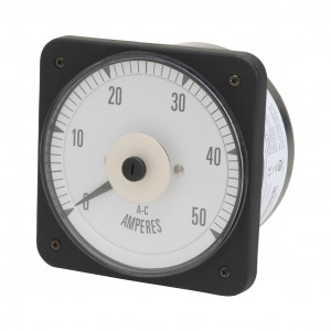 SIFAM TINSLEY MCS SWITCHBOARD METER, 4.5IN ANALOG DIAL DISPLAY, 0-50A AC, CURRENT INPUT, TRANSFORMER RATED, PIVOT AND JEWEL, ROUND 4-HOLE MOUNT.