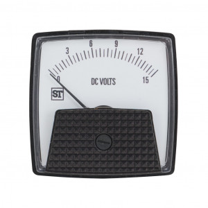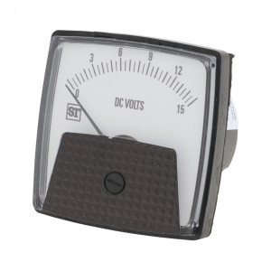 SIFAM TINSLEY SMARTLOOK PANEL METER, 2.5IN ANALOG DIAL DISPLAY, 0-15 VDC, VOLTAGE INPUT, SELF CONTAINED, MOVING COIL, ROUND 3-HOLE MOUNT.