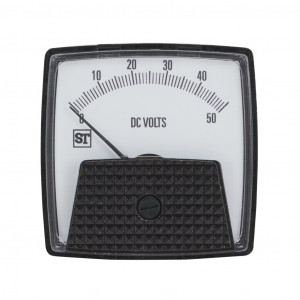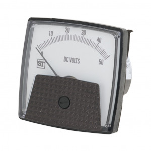 SIFAM TINSLEY SMARTLOOK PANEL METER, 2.5IN ANALOG DIAL DISPLAY, 0-50 VDC, VOLTAGE INPUT, SELF CONTAINED, MOVING COIL, ROUND 3-HOLE MOUNT.