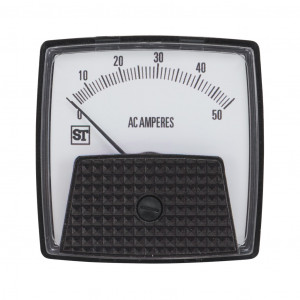 SIFAM TINSLEY SMARTLOOK PANEL METER, 2.5IN ANALOG DIAL DISPLAY, 0-50A AC, CURRENT INPUT, TRANSFORMER RATED, MOVING IRON, ROUND 3-HOLE MOUNT.