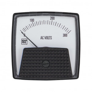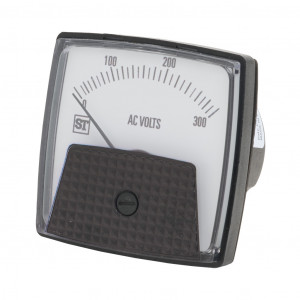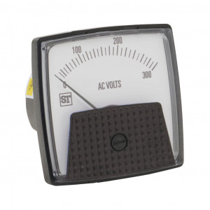 SIFAM TINSLEY SMARTLOOK PANEL METER, 2.5IN ANALOG DIAL DISPLAY, 0-300 VAC, VOLTAGE INPUT, SELF CONTAINED, MOVING IRON, ROUND 3-HOLE MOUNT.