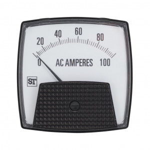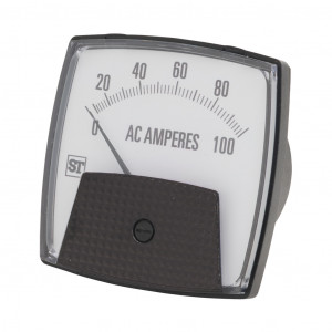 SIFAM TINSLEY SMARTLOOK PANEL METER, 3.5IN ANALOG DIAL DISPLAY, 0-100A AC, CURRENT INPUT, TRANSFORMER RATED, MOVING IRON, ROUND 3-HOLE MOUNT.