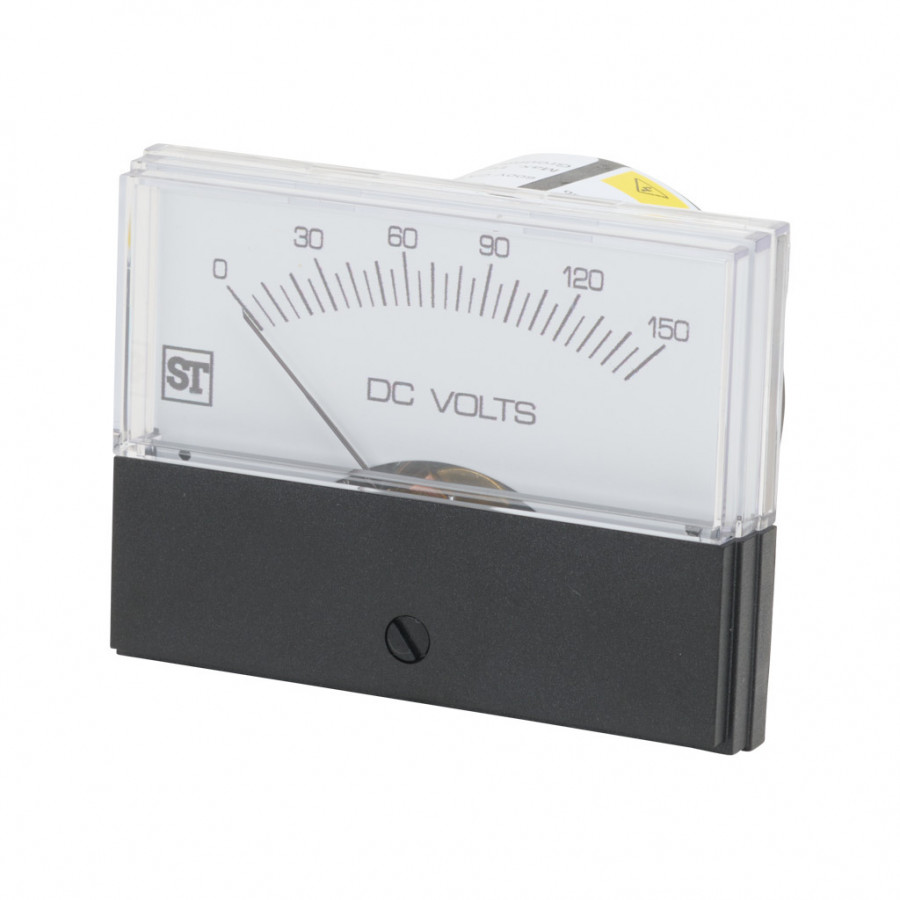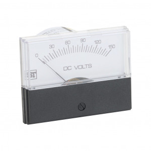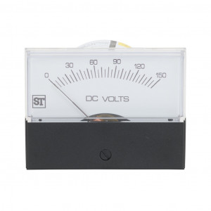 SIFAM TINSLEY CONTENDER PANEL METER, 2.5IN ANALOG DIAL DISPLAY, 0-150 VDC, VOLTAGE INPUT, SELF CONTAINED, MOVING COIL, ROUND 4-HOLE MOUNT.