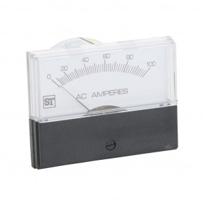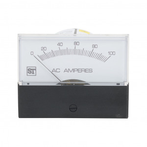 SIFAM TINSLEY CONTENDER PANEL METER, 2.5IN ANALOG DIAL DISPLAY, 0-100A AC, CURRENT INPUT, TRANSFORMER RATED, MOVING IRON, ROUND 4-HOLE MOUNT.