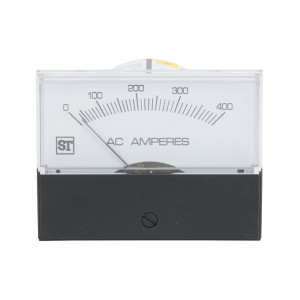 SIFAM TINSLEY CONTENDER PANEL METER, 2.5IN ANALOG DIAL DISPLAY, 0-400A AC, CURRENT INPUT, TRANSFORMER RATED, MOVING IRON, ROUND 4-HOLE MOUNT.
