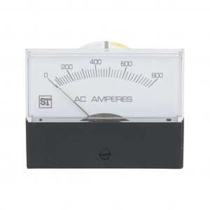 SIFAM TINSLEY CONTENDER PANEL METER, 2.5IN ANALOG DIAL DISPLAY, 0-800A AC, CURRENT INPUT, TRANSFORMER RATED, MOVING IRON, ROUND 4-HOLE MOUNT.