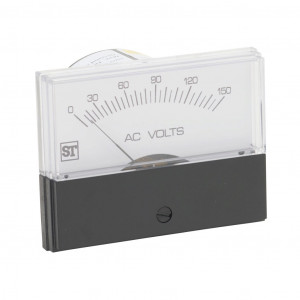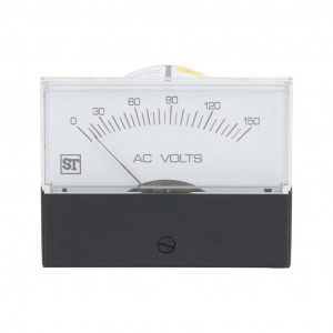 SIFAM TINSLEY CONTENDER PANEL METER, 2.5IN ANALOG DIAL DISPLAY, 0-150 VAC, VOLTAGE INPUT, SELF CONTAINED, MOVING IRON, ROUND 4-HOLE MOUNT.