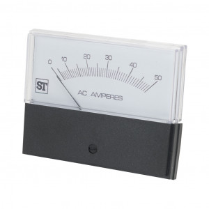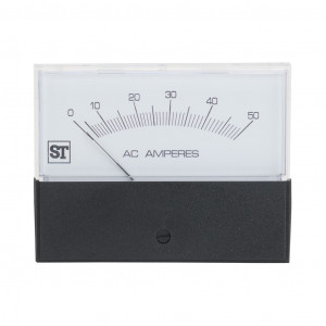 SIFAM TINSLEY CONTENDER PANEL METER, 3.5IN ANALOG DIAL DISPLAY, 0-50A AC, CURRENT INPUT, TRANSFORMER RATED, MOVING IRON, ROUND 4-HOLE MOUNT.