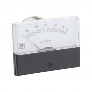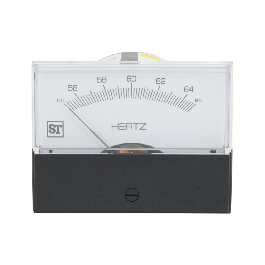 SIFAM TINSLEY CONTENDER PANEL METER, 2.5IN ANALOG DIAL DISPLAY, 55-65 HZ, FREQUENCY INPUT, SELF CONTAINED, PIVOT AND JEWEL, ROUND 4-HOLE MOUNT.