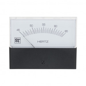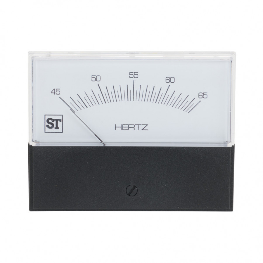 SIFAM TINSLEY CONTENDER PANEL METER, 3.5IN ANALOG DIAL DISPLAY, 45-65 HZ, FREQUENCY INPUT, SELF CONTAINED, PIVOT AND JEWEL, ROUND 4-HOLE MOUNT.
