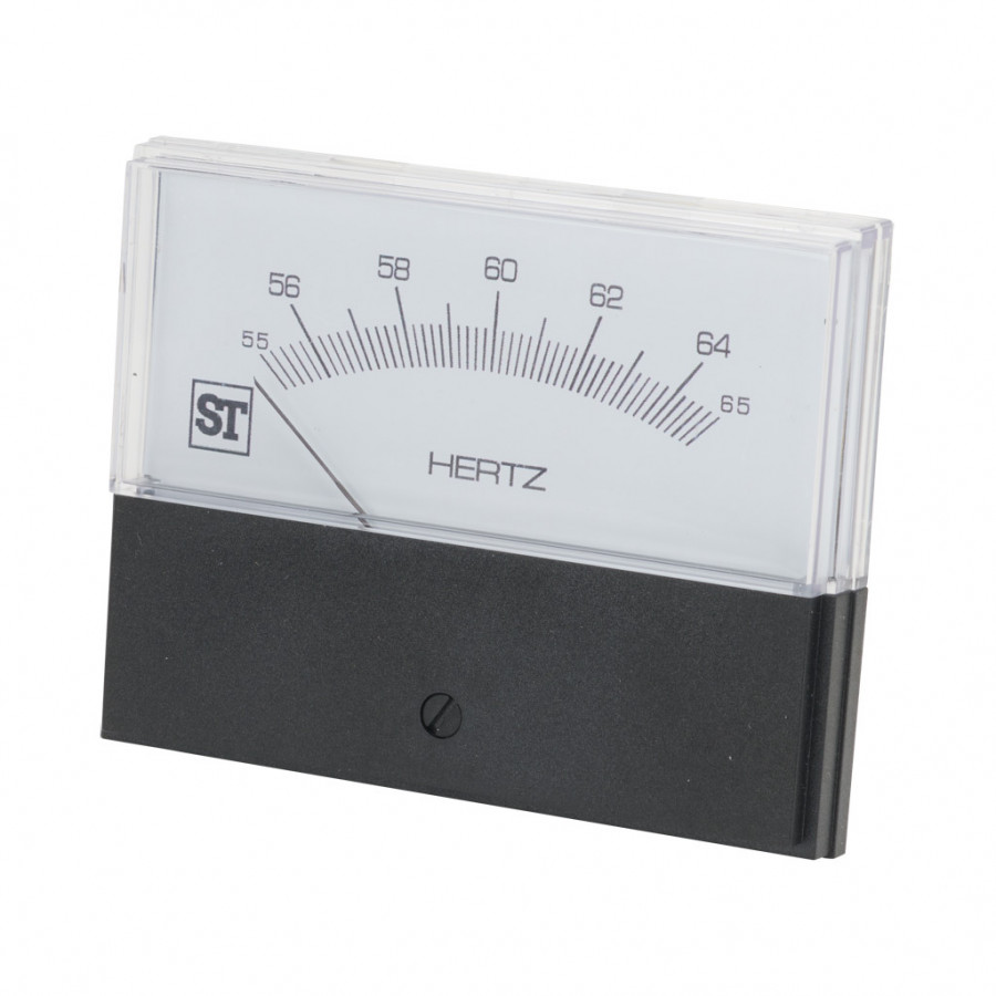 SIFAM TINSLEY CONTENDER PANEL METER, 3.5IN ANALOG DIAL DISPLAY, 55-65 HZ, FREQUENCY INPUT, SELF CONTAINED, PIVOT AND JEWEL, ROUND 4-HOLE MOUNT.