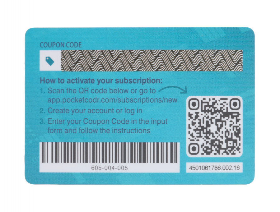 POCKETCODR CONTRINEX SUITE PLAN SUBSCRIPTION CARD, 1 YEAR RENEWAL. FOR USE WITH POCKETCODR POC-CDR-M12.