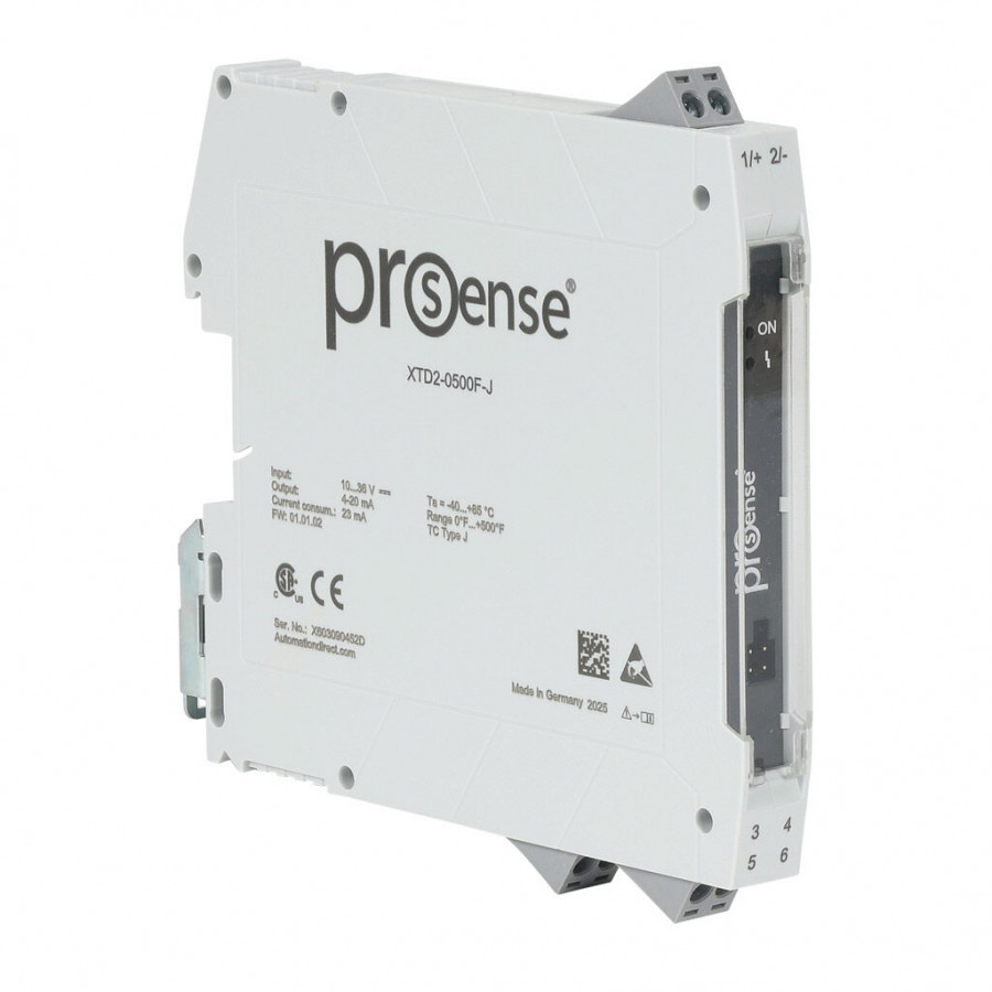 Precio no incluye IVAPROSENSE TEMPERATURE TRANSMITTER, ISOLATED, INPUT: 1-CHANNEL, TYPE J THERMOCOUPLE, 0 TO 500 DEG F FIXED, OUTPUT: 1-CHANNEL, OUTPUT CURRENT SIGNAL RANGE(S) OF 4-20 MA, 10-36 VDC OPERATING VOLTAGE, 35MM DIN RAIL MOUNT, REMOVABLE SCREW TERMINAL PLUGS.